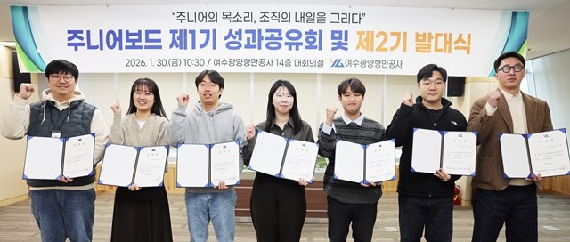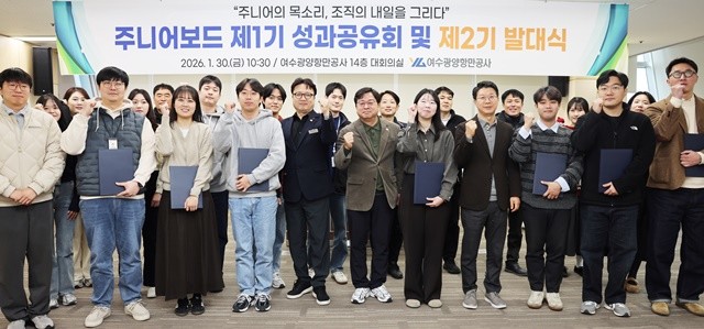 [위키트리 광주전남취재본부 노해섭 기자]여수광양항만공사(YGPA, 사장 직무대행 황학범)는 30일 공사 주니어보드 1기 성과공유회와 2기 발대식을 개최하고, 지난 1년간의 활동 성과를 공유하는 한편 새로운 기수의 출범을 알렸다. 이날 행사에는 공사 임원과 부서장, 주니어보드 1·2기 구성원들이 참석했다.