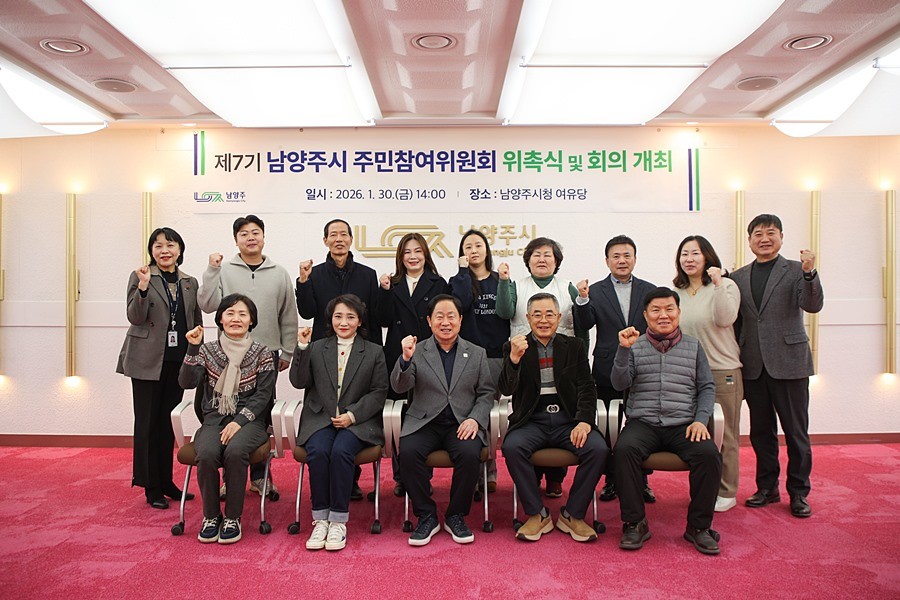 경기 남양주시(시장 주광덕)는 30일 시청 여유당에서 ‘제7기 남양주시 주민참여위원회’ 위원을 위촉하고, 2026년 제1회 주민참여위원회 회의를 개최했다고 밝혔다.