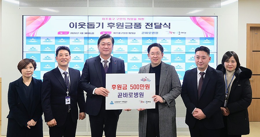 인천 미추홀구(구청장 이영훈)는 지난 30일 곧바로병원(병원장 신승준)으로부터 후원금 500만 원을 전달받았다.