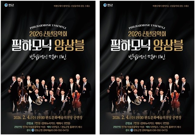완도군은 오는 2월 4일 완도문화예술의전당에서 ‘필하모닉 앙상블’ 초청 공연을 선보인다고 2일 밝혔다.