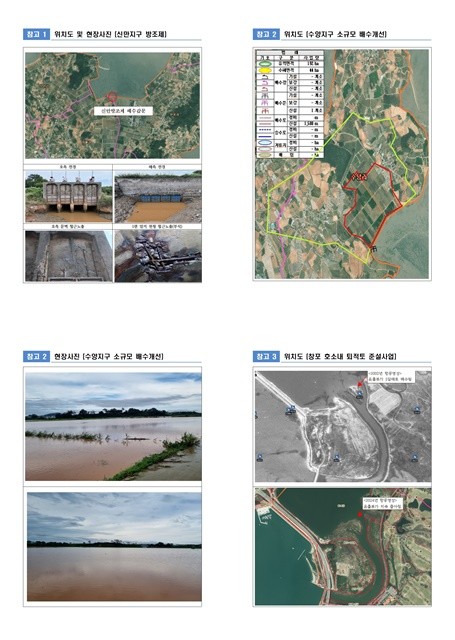 주요 사업은 ▲신만방조제 배수갑문 재가설(방조제 개보수) ▲수양지구 소규모 배수개선사업 ▲창포호 호소 내 퇴적토 준설사업 등 3건으로, 유역 단위 배수능력 회복을 통해 침수 피해 예방과 재난 대응 역량 강화를 목표로 추진된다.