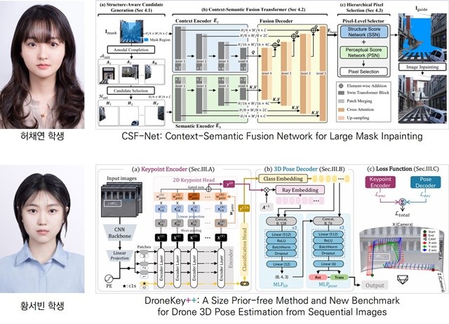 [위키트리 광주전남취재본부 노해섭 기자] 전남대학교 AI융합대학의 조영준 교수 연구팀이 컴퓨터비전과 로보틱스 분야 국제 우수학술대회에서 연구 성과를 잇달아 인정받았다. 허채연 학생(석사과정생)은 대형 마스크 인페인팅 연구로 IEEE WACV 2026에, 황서빈 학생(석·박통합과정생)은 드론 3D 자세 추정 연구로 IEEE ICRA 2026에 각각 게재 승인을 받았다.