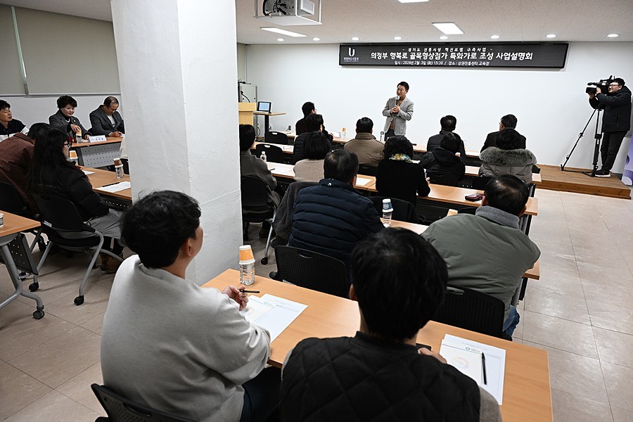 경기 의정부시(시장 김동근)는 지난 3일 의정부도시공사 상권진흥센터 교육장에서 ‘행복로 골목형상점가 특화가로 조성사업’ 주민설명회를 개최했다.