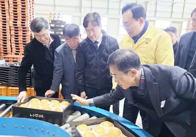 [위키트리 광주전남취재본부 노해섭 기자] 농협전남본부(본부장 이광일)는 3일 설 명절을 앞두고 농산물 출하작업이 한창인 농협나주시조합공동사업법인(대표이사 배민호) 농산물 선별장을 방문해 과일 가격 및 산지동향 등을 살폈다.