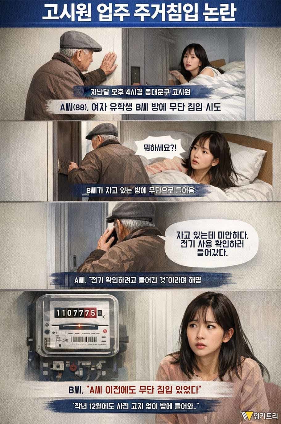인근 대학 학생 커뮤니티에는 지난해 9월 A 씨의 고시원을 지목하며 "XXXX하우스 살아본 사람 있냐. 여기 할아버지 성격이 터치 심하고 세입자 방 불쑥 들어와서 짜증났다"는 글이 올라오기도 했다.