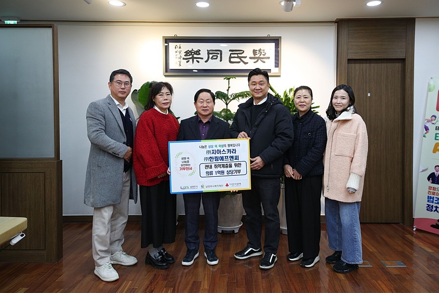 경기 남양주시(시장 주광덕)는 4일 ㈜지아스카라(공동대표 김승환·이성환)와 ㈜한림에프앤씨(대표 한긍수)가 관내 취약계층을 위해 겨울 의류 1억 원 상당을 남양주시복지재단에 전달했다고 밝혔다.
