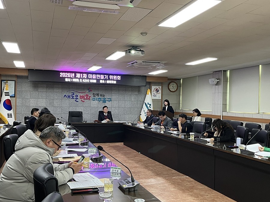 인천 미추홀구(구청장 이영훈)는 지난 4일 구청 중회의실에서 ‘2026년 제1차 마을만들기 위원회’를 열고 주민 주도의 마을공동체 활성화 방안을 논의했다.