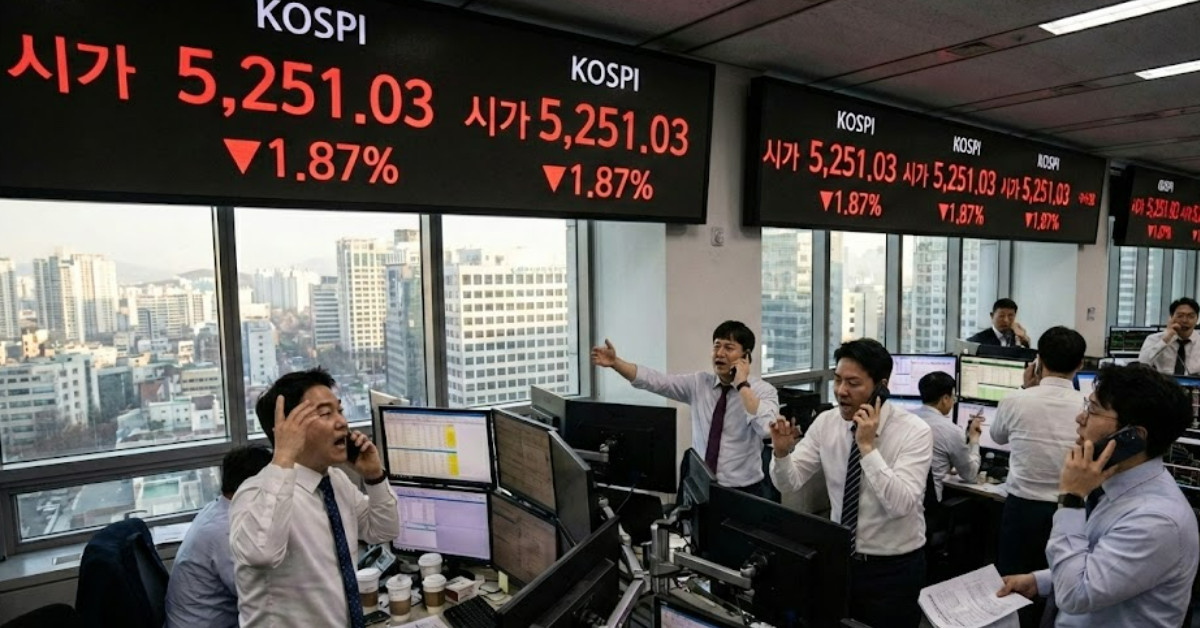 2026년 2월 5일 코스피가 외국인과 기관의 동반 매도세에 밀려 3% 넘게 급락하며 5100선 중반으로 후퇴했다. 이날 코스피 지수는 전 거래일 대비 207.53포인트(3.86%) 하락한 5163.57로 장을 마쳤다. 장중 한때 5142.20까지 밀리며 변동성을 키웠으나 개인 투자자의 대규모 매수세가 유입되며 낙폭을 일부 만회했다. 이날 거래량은 9억 467만 5000주, 거래대금은 32조 2278억 원을 기록했다.