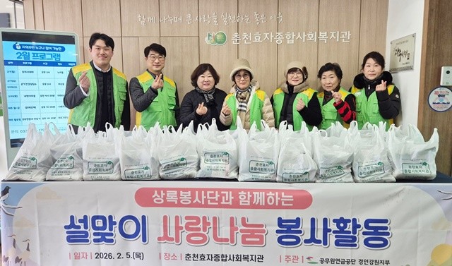 공단 직원 및 상록봉사단 10여 명은 이날 춘천효자종합사회복지관을 직접 찾아 지역 내 독거 어르신들이 한파 속에서도 따뜻한 설 명절을 보낼 수 있도록 떡국 꾸러미 110인분을 전달했다. 특히, 복지관 식당 이용을 마치고 나오는 어르신들께는 직접 떡국 꾸러미를 건네며 새해 덕담과 함께 마음을 나누는 시간을 가졌다.