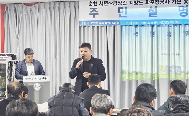 정영균 의원은 5일, 순천시 서면행정복지센터 회의실에서 열린 ‘지방도 840호선(서면~광양 간) 확포장공사 기본 및 실시설계용역 주민설명회’에 참석해 사업 현황을 점검하고 지역민의 의견을 청취했다.