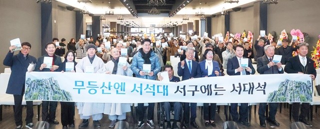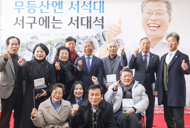 서 전 청장은 6일 오후 4시 서구 치평동 라붐웨딩홀 2층 대연회장에서 저서 「무등산엔 서석대, 서구에는 서대석」 출간 기념행사를 개최했다. 행사 시작 전부터 지지자와 시민들이 몰려들어 긴 대기 줄이 이어졌고, 행사장은 발 디딜 틈조차 없을 정도로 북새통을 이뤘다. 준비된 좌석이 부족해 추가 의자를 급히 배치할 만큼 열기가 뜨거웠다.