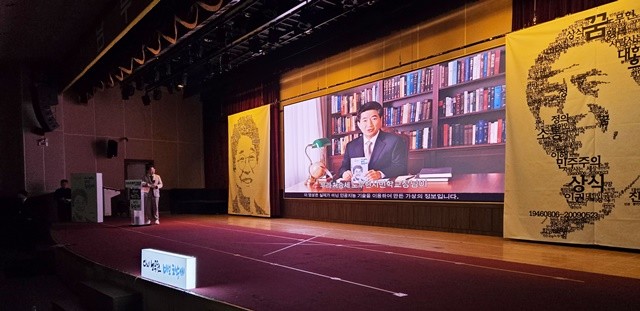 이날 행사의 백미는 AI 기술로 구현된 고(故) 노무현 전 대통령의 축사 영상이었다.