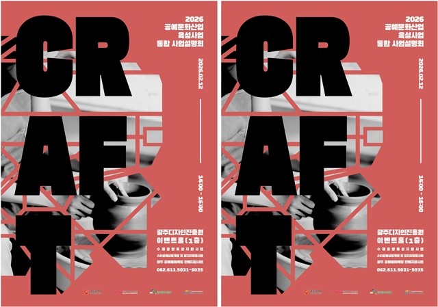 광주디자인진흥원(원장 김용모)은 오는 12일 오후 2시 진흥원 1층 이벤트홀에서 ‘2026년 공예문화산업 육성사업 통합 사업설명회’를 개최한다고 8일 밝혔다.
