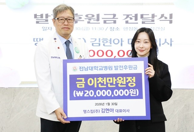 이번 후원은 지역 거점 국립대병원으로서 공공의료와 중증·응급의료를 책임지고 있는 전남대학교병원의 역할에 공감해 마련됐다. 김 대표는 지역 의료의 최전선에서 사투를 벌이고 있는 의료진과 병마와 싸우는 환자들에게 작지만 진심 어린 응원을 전하고 싶다는 뜻을 밝혔다.