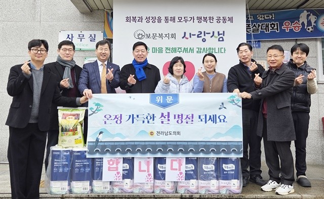 김정희 위원장은 어르신들께 정성 어린 인사를 전하며 “설은 서로의 온정을 나누는 소중한 시간”이라며 “오늘의 작은 나눔이 어르신들께 위로와 희망이 되기를 바라며, 앞으로도 전남도의회는 어르신들이 존중받고 행복한 노후를 보내실 수 있도록 최선을 다하겠다”고 밝혔다.