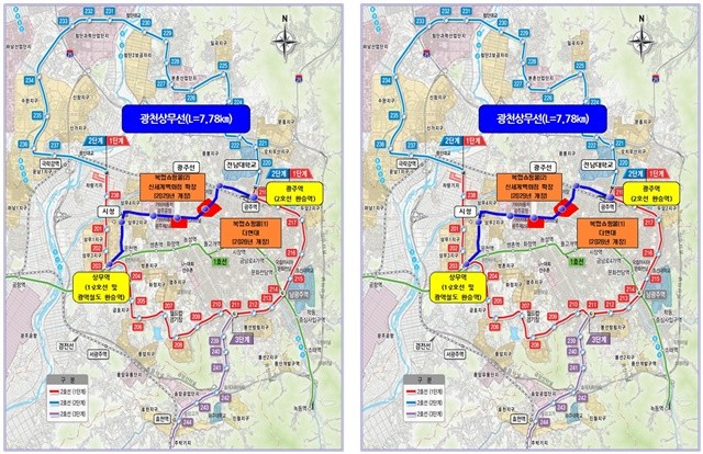 광천상무선은 광주종합버스터미널과 광주기아챔피언스필드 등 기존에 교통 접근성이 상대적으로 취약했던 지역을 촘촘히 연결한다. 또 오는 2028년 개장을 목표로 추진 중인 복합쇼핑몰 조성 등 광천권역 대규모 개발 사업과 연계돼 교통문제 해결과 지역에 활력을 불어넣을 것으로 기대된다.