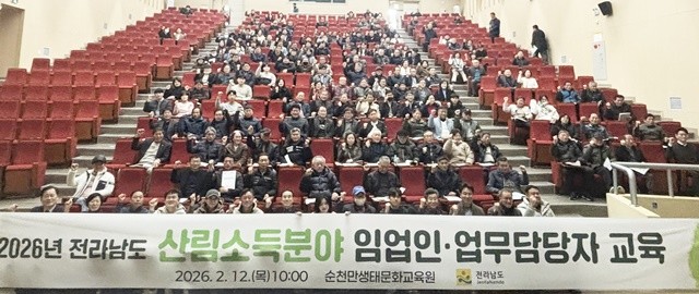[위키트리 광주전남취재본부 노해섭 기자] 전라남도(도지사 김영록)는 12일 순천만생태문화교육원에서 임업인의 안정적 소득 창출을 위해 ‘산림소득분야 임업인·업무담당자 교육’을 했다.