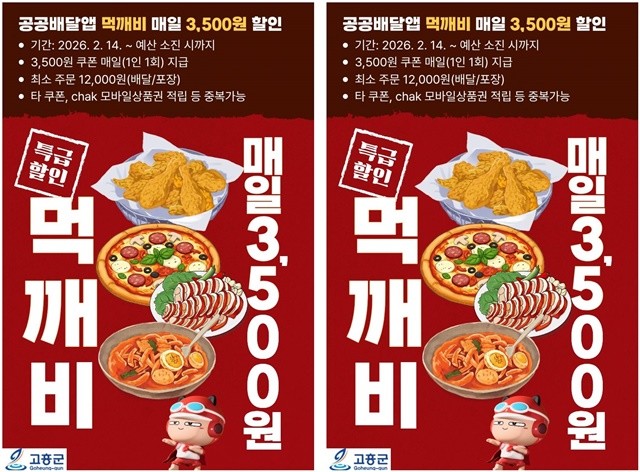 전남 고흥군, 설 명절 ‘먹깨비’로 쏜다! 배달비 매일 3,500원 할인