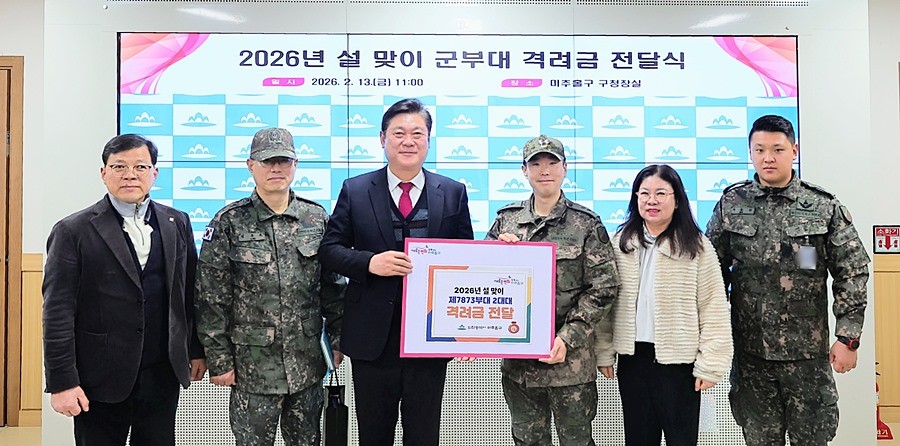 인천 미추홀구(구청장 이영훈)는 13일 설 명절을 맞아 국토방위와 국가안보를 위해 헌신하는 군 장병들의 노고를 격려하기 위해 미추홀구 관교동 승학산에 위치한 육군 제7873부대 2대대에 격려금을 전달했다.