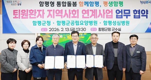 함평군은 13일 함평군공립요양병원, 함평성심병원과 ‘퇴원환자 지역사회 연계사업’ 업무협약을 체결하고, 병원 치료가 끝난 어르신들이 집으로 돌아가서도 끊김 없는 보살핌을 받을 수 있는 시스템을 가동한다고 밝혔다.
