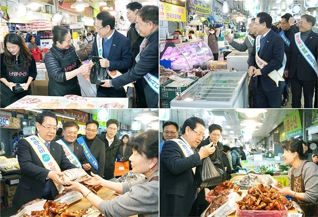 김 지사는 물건을 고르는 와중에도 상인들의 손을 일일이 잡으며 “경기가 어려워 고생이 많으시다”고 위로를 건넸다. 또한 시장을 찾은 도민들에게는 “정이 넘치고 값싸고 질 좋은 전통시장을 자주 이용해 달라”고 당부하며, 넉넉한 인심이 오가는 명절 분위기를 독려했다.