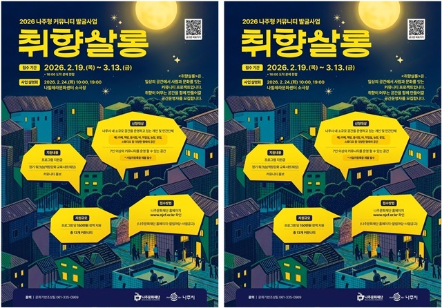 나주문화재단은 오는 2월 24일 나빌레라문화센터 소극장에서 ‘2026년 나주문화재단 통합 공모사업설명회’를 연다고 13일 밝혔다.