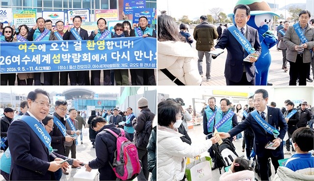 [위키트리 광주전남취재본부 노해섭 기자]김영록 전라남도지사가 민족 대명절 설을 맞아 귀성객 환영과 함께 지역 최대 국제 행사인 '2026여수세계섬박람회' 알리기에 직접 나섰다.