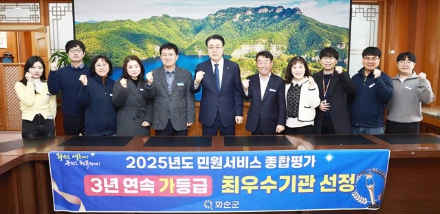 [위키트리 광주전남취재본부 노해섭 기자]화순군(군수 구복규)은 19일 행정안전부와 국민권익위원회가 공동 주관한 ‘2025년 민원서비스 종합평가’에서 최우수 등급인 ‘가’ 등급을 받아 3년 연속 최우수기관으로 선정됐다고 밝혔다.