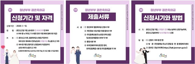 시 관계자는 “이번 결혼축하금 지원이 청년들이 살기 좋은 도시 순천에서 결혼 생활을 시작하는 청년 부부에게 따뜻한 응원이자, 행복한 가정을 꾸리는 데 작은 보탬이 되길 바란다”고 말했다.