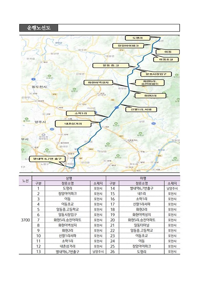 3700번 노선은 광역 대중교통 접근성이 상대적으로 낮았던 이동·일동·화현·내촌 지역 주민들의 도심 이동 편의를 높이고, 수도권 광역교통망과의 연계를 강화하기 위해 신설했다.
