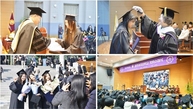 [위키트리 광주전남취재본부 노해섭 기자]2월의 봄기운과 함께 광주여자대학교 교정이 떠나가는 이들의 아쉬움과 새로운 출발의 설렘으로 물들었다. 20일 오전 11시, 대학 본부 1층 국제회의장은 사회라는 더 큰 무대로 나아갈 준비를 마친 745명의 주인공들을 위한 축제의 장으로 변모했다.