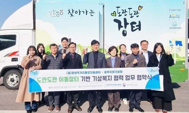 협약에 따라 광주지방기상청은 폭염‧한파 영향예보와 단계별 행동요령,기상특보, 위험기상정보를 제공하고, 장성먹거리통합지원센터는 이동장터 차량의 전광판‧외부 모니터‧음성 안내 시스템을 활용해 배후마을 어르신들에게 기상정보를 현장에서 직접 전달하게 된다.