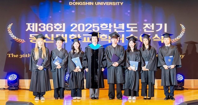 동신대학교는 23일 오전 10시 교내 대정도서관 동강홀에서 ‘2025학년도 전기 학위수여식’을 개최했다고 밝혔다. 이날 영예로운 학위를 받은 졸업생은 박사 75명, 석사 166명, 학사 1,196명 등 총 1,437명이다.