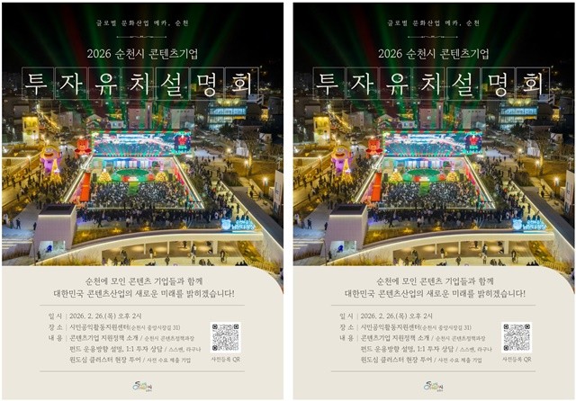 전남 순천시, 2026 콘텐츠기업 투자유치 설명회 개최