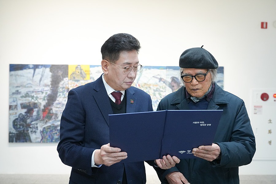 기증식에서는 전진선 양평군수가 기증증서를 수여했으며, 이어 작가의 작품 설명과 전시 관람이 진행됐다.