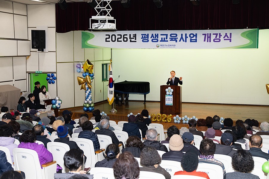 인천 윤환 계양구청장은 지난 23일 계양구노인복지관(관장 정미덕)에서 열린 ‘2026년 평생교육사업 개강식’에 참석해 어르신들의 새로운 배움의 출발을 응원했다.
