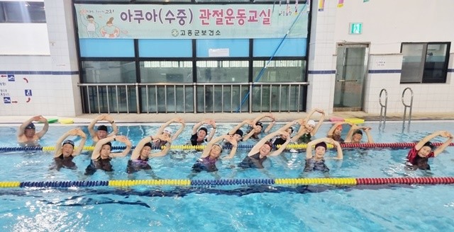 [위키트리 광주전남취재본부 노해섭 기자]고흥군(군수 공영민)은 퇴행성 관절염으로 어려움을 겪는 어르신들의 관절 건강증진과 건강생활 실천 분위기 확산을 위해 오는 2월 25일부터 12월 15일까지 ‘아쿠아(수중) 관절 운동교실’을 운영한다고 밝혔다.