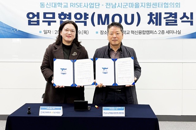 [위키트리 광주전남취재본부 노해섭 기자]동신대학교 RISE사업단이 「행복공동체 전남」 실현을 위해 전남시군마을지원센터협의회와 협약을 체결하고 지역 중심의 돌봄 모델 확산에 나섰다.