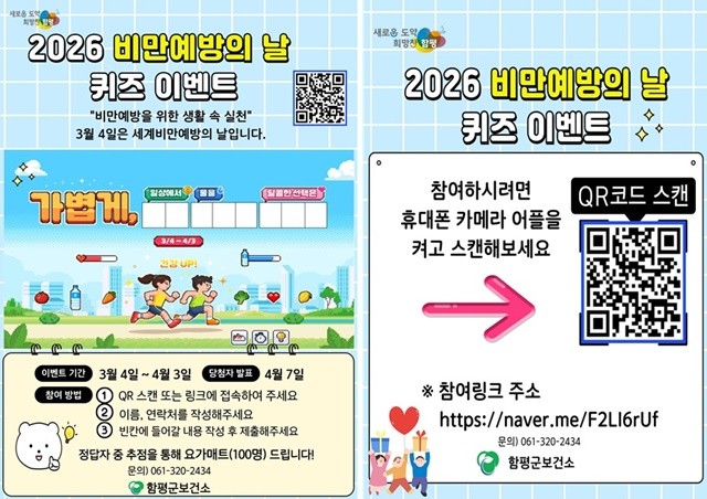 전남 함평군, ‘비만예방의 날’ 맞아 온·오프라인 캠페인~ "앱 켜고 걷고 퀴즈 풀자"