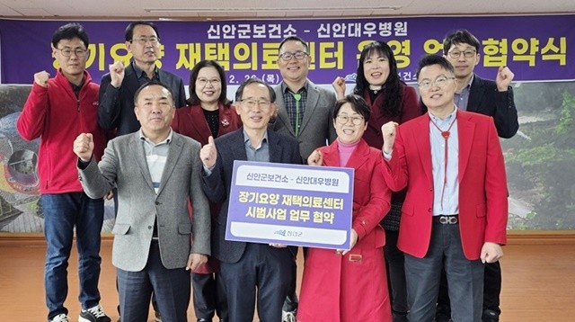 전남 신안군보건소는 26일 비금면사무소에서 신안대우병원(원장 최명석)과 ‘장기요양 재택의료센터 시범사업’ 추진을 위한 업무협약을 체결했다고 밝혔다.