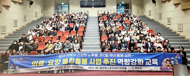 [위키트리 광주전남취재본부 노해섭 기자]화순군(군수 구복규)은 지난 25일 의료·요양 통합돌봄 사업의 안정적 정착과 현장 실무 역량 강화를 위해 통합돌봄 추진 역량강화 교육을 실시했다고 밝혔다.
