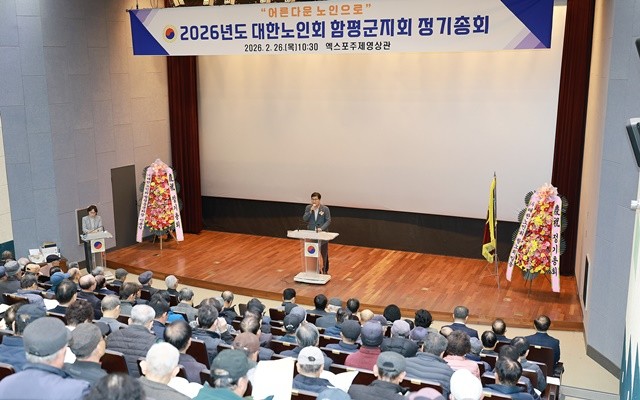 함평군은 지난 26일 함평엑스포공원 주제영상관에서 열린 ‘(사)대한노인회 함평군지회 2026년 정기총회’가 성황리에 마무리됐다고 27일 밝혔다.