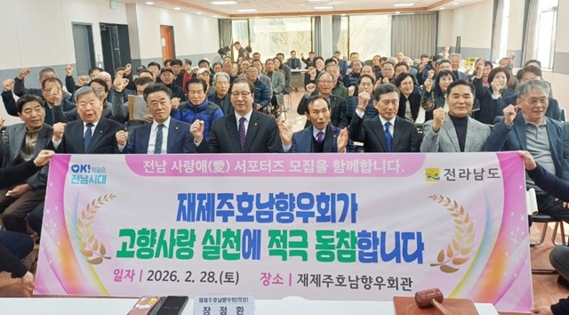 장정환 재제주호남향우회장 또한 "전남·광주 행정통합이라는 역사적 전환점을 앞두고 있는 지금이 고향 발전의 절호의 기회"라며 "재제주 호남인들도 고향을 위해 힘을 보태겠다"고 강조했다.
