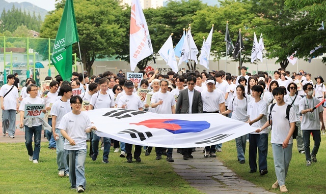 특히 이날 행사에서는 이 총장과 보직 교수, 학생 대표들이 무대에 올라 가수 박학기의 노래 '아름다운 세상'을 합창하며 신입생들에게 감동과 응원의 메시지를 전달해 눈길을 끌었다.