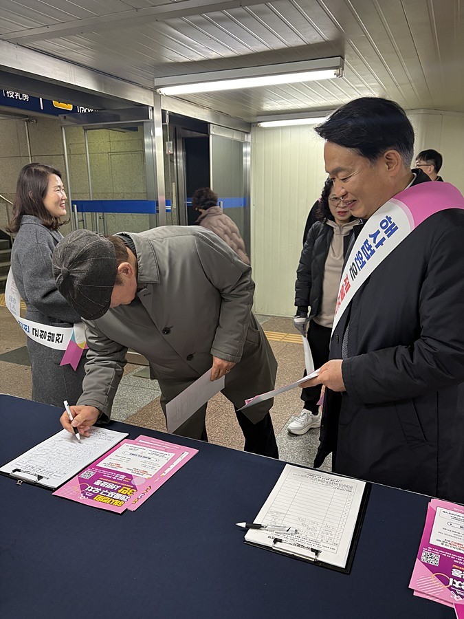 이번 행사는 지하철을 이용하는 시민들에게 ‘해사법원 유치 서명운동’에 적극 동참해 줄 것을 호소하는 형태로 진행됐다.