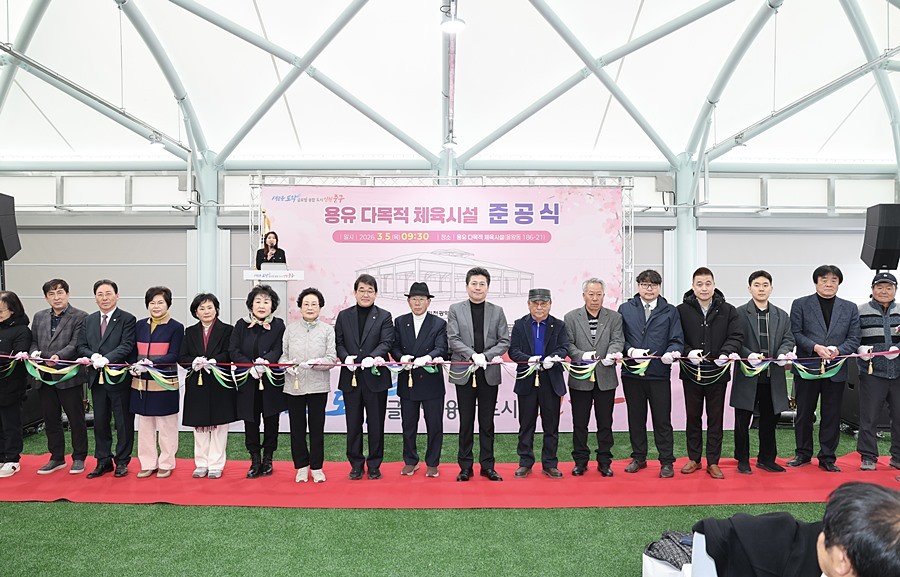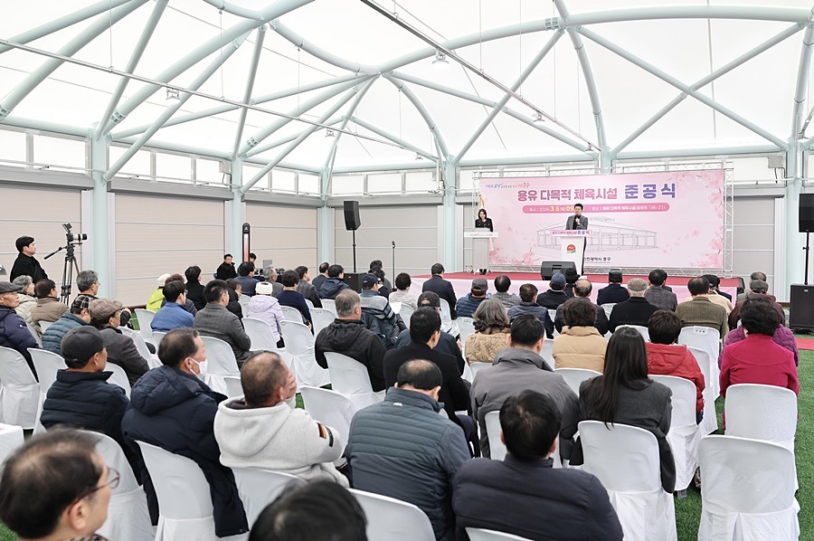 이날 준공식에서는 기념사·축사, 테이프 자르기, 기념 촬영, 시설 순회 등을 진행하며, 다목적 체육시설의 준공을 축하했다.