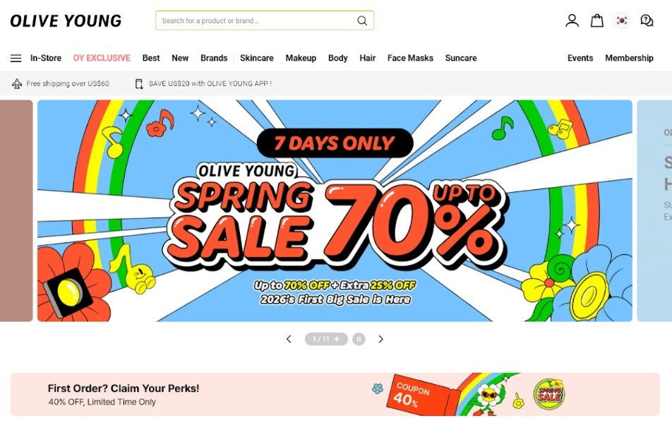 방한 외국인 관광객이 한국에서 경험한 브랜드를 귀국 후에도 글로벌몰을 통해 지속해서 구매하는 구조가 안착하고 있다. 지난해 말 기준 약 453만 명의 회원을 확보한 올리브영 글로벌몰은 미국과 일본, 영국을 거점으로 견고한 성장세를 유지하며 K뷰티 역직구의 대표 거점으로 자리 잡았다. 올리브영은 1만 개 이상의 K-뷰티 및 K 웰니스 상품군을 앞세워 해외 소비자가 일상에서 한국의 라이프스타일을 향유할 수 있는 접점을 지속적으로 넓힐 방침이다. 연간 4회 진행되는 글로벌몰 시즌세일은 오는 7일까지 계속된다.