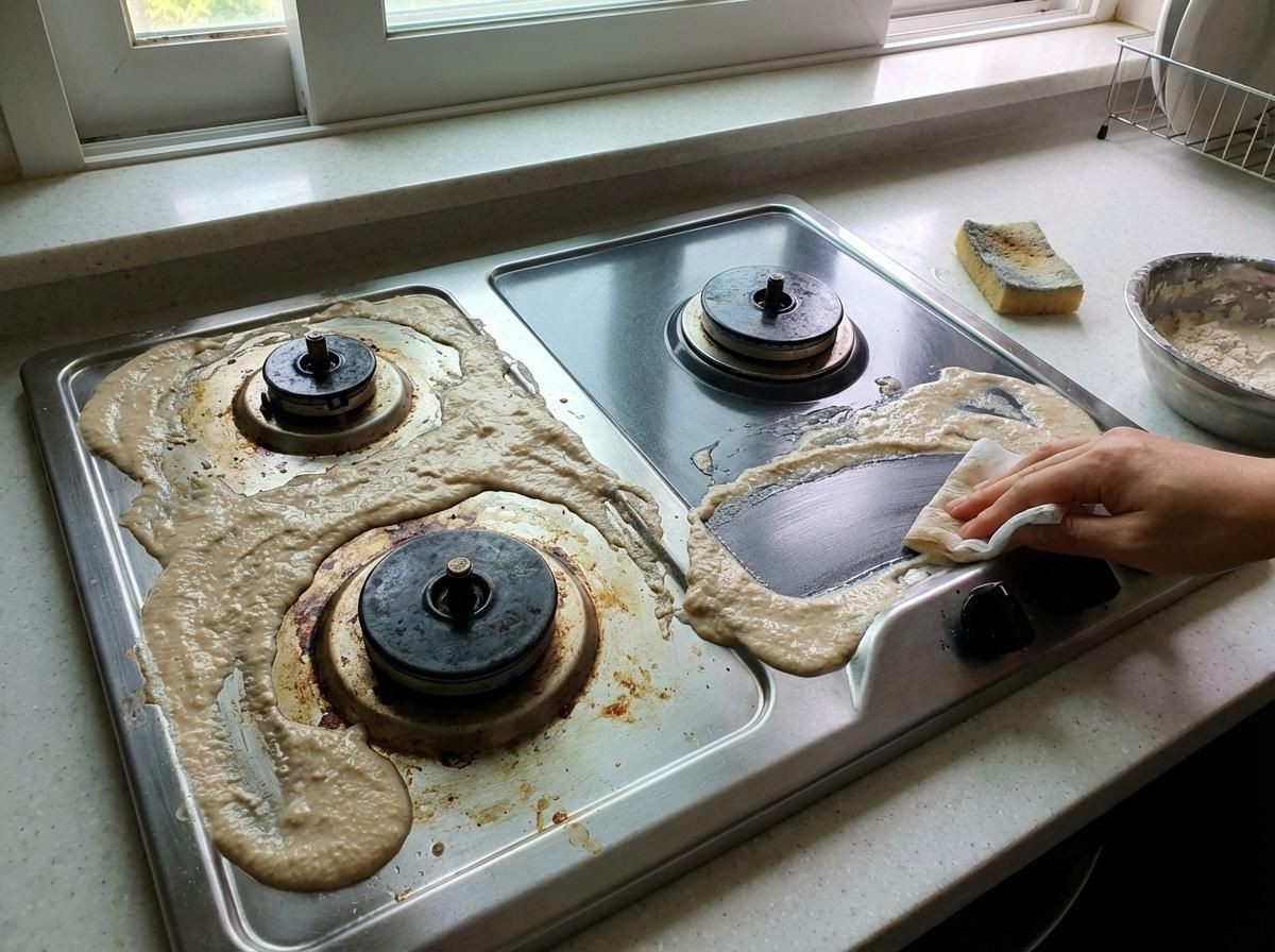 부침가루와 물을 섞어 묽은 반죽을 만든 뒤 기름때가 있는 부분에 얇게 바른다. 약 15~20분 정도 두면 가루가 기름 성분을 흡수하면서 오염이 부드러워진다. 이후 물티슈나 수세미로 닦아내면 기름때 제거가 한층 수월해진다. 일반 세제를 사용하는 횟수를 줄이는 데도 도움이 된다.