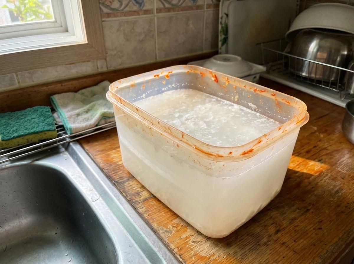 반찬통에 물을 채우고 부침가루를 함께 넣어 가볍게 섞은 뒤 일정 시간 두는 방식이다. 보통 1시간 정도 두면 가루 성분이 냄새 입자와 색소를 흡수하는 데 도움이 된다. 이후 물로 깨끗이 헹구면 냄새가 한층 줄어든 상태를 확인할 수 있다.