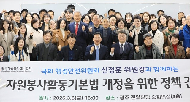 신정훈 위원장은 "자원봉사자들의 헌신은 우리 사회의 든든한 뿌리지만, 그동안 이들을 보호할 법적 장치는 턱없이 부족했다"며 "국회 행정안전위원장으로서 20년 묵은 낡은 옷을 벗고, 2026년 세계 자원봉사자의 해에 걸맞은 새로운 법이 본회의 문턱을 넘을 수 있도록 끝까지 챙기겠다"고 강력한 의지를 밝혔다.